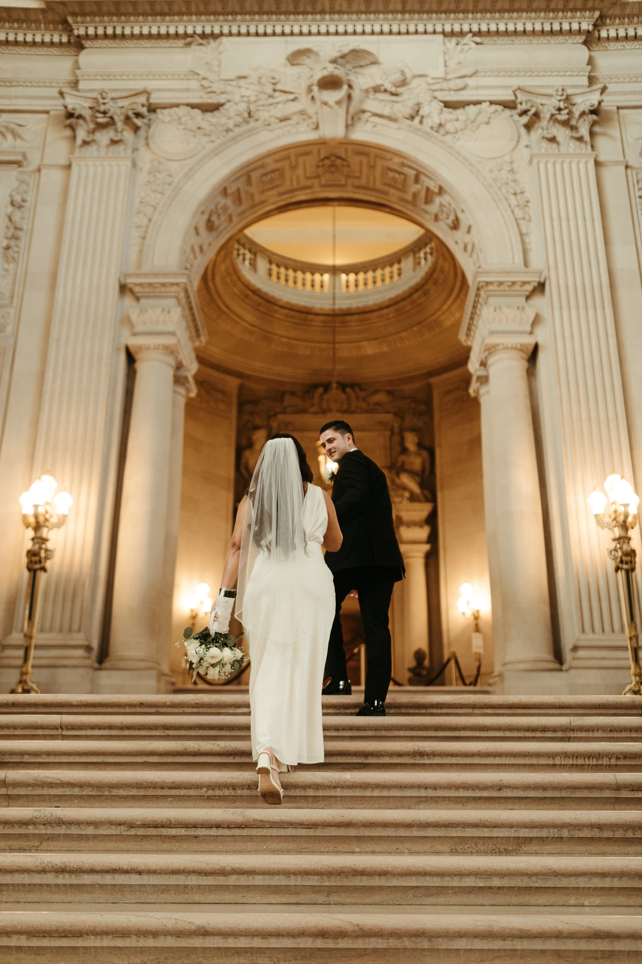 Alyssa and Kevin opted on something a little more quiet and intimate at the absolutely stunning San Francisco City Hall and it was the most perfect day. We spent time exploring the beautiful architecture within the building then went for a little stroll outdoor for some fun scenic photos. Take a look at how their gorgeous celebration of love unfolded.